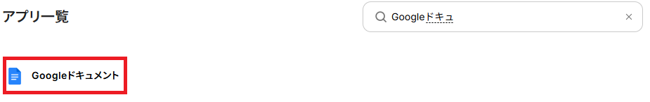 Googleドキュメントのマイアプリ連携 マイアプリ>新規接続よりGoogleドキュメントを検索し、クリックします。