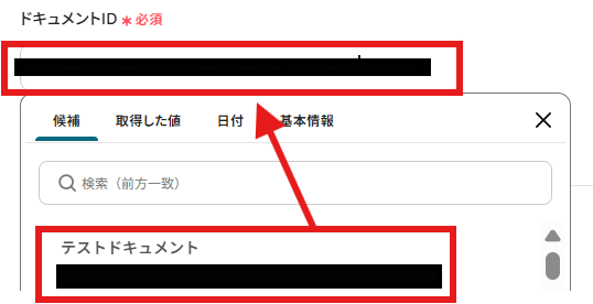 上記のドキュメントをYoomの設定画面上で「候補」より指定していきます。