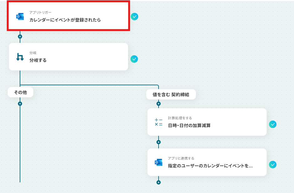 - 特定の予定が登録されると、関連する別の予定が自動作成されるため、これまで手作業で行っていたカレンダー登録の時間を短縮できます。