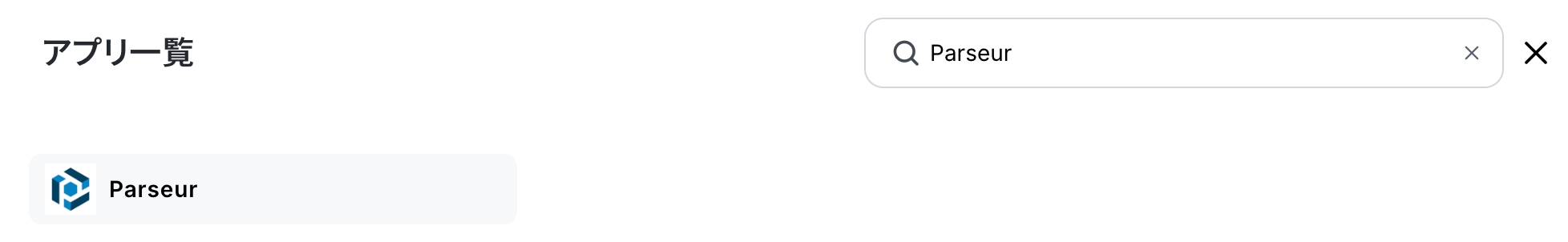 新規接続をクリックしたあと、アプリのメニュー一覧が表示されるのでParseurと検索し、対象アプリをクリックしてください。