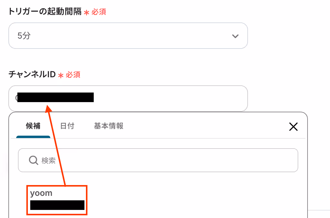 次の画面で、「トリガーの起動間隔」と「チャンネルID」を入力します。
