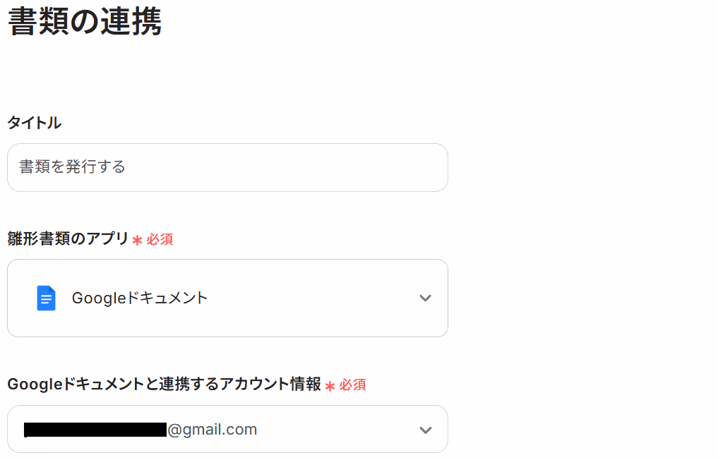 Googleフォームの内容をもとに、書類を自動で発行する設定をします。