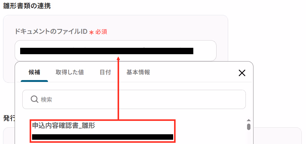 先ほど用意したドキュメントのファイルIDを候補から選択してください。