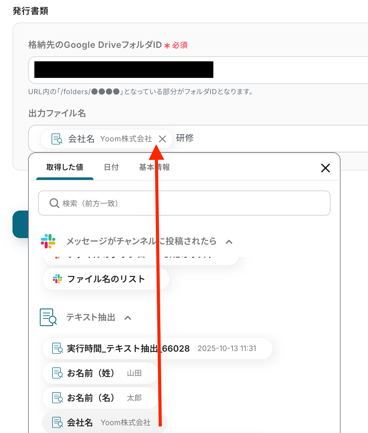 同様に格納先のGoogle DriveフォルダIDを選択しましょう。