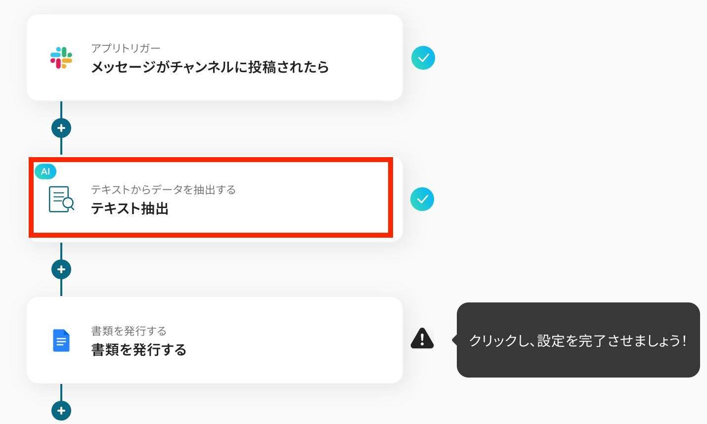 それではここから代表的な例として、Slackにメッセージが投稿されたら、その内容を抽出し、GoogleドキュメントをテンプレートとしてPDF書類を自動発行するフローを解説していきます!