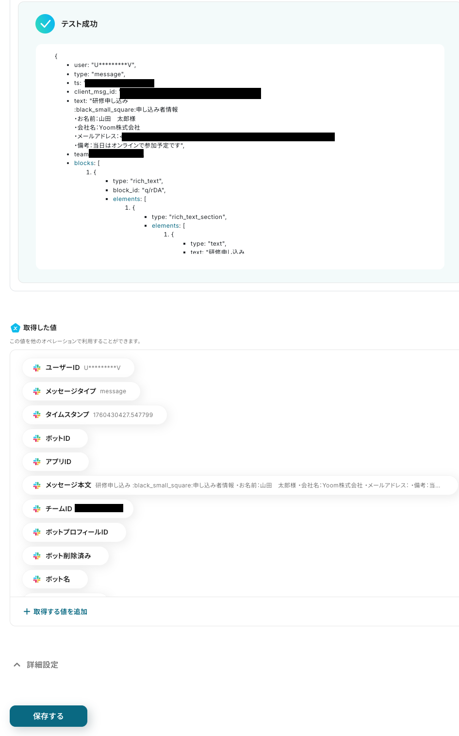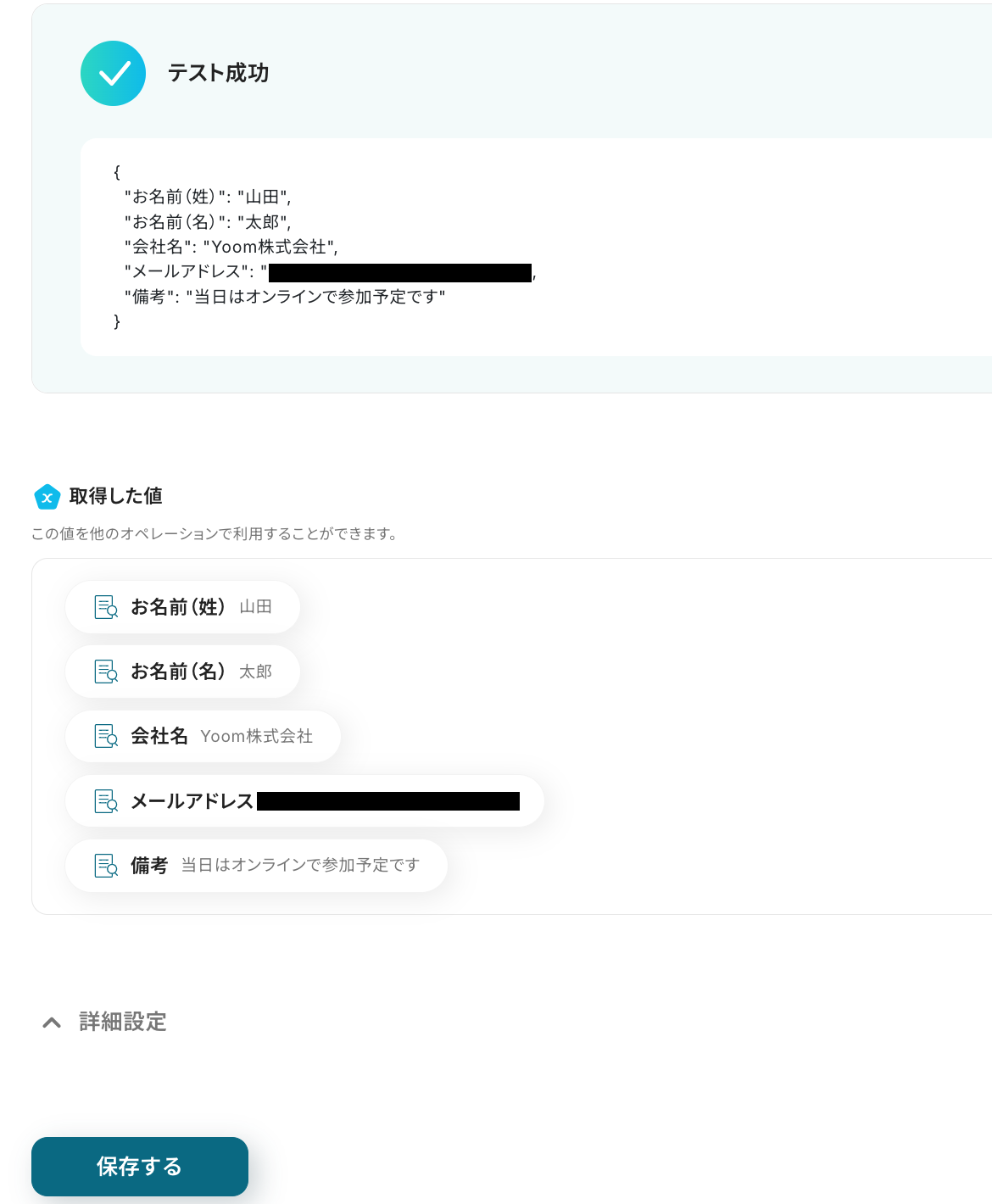 上記を確認し、問題なければ忘れずにYoomの設定画面に戻って「保存する」をクリックしましょう。