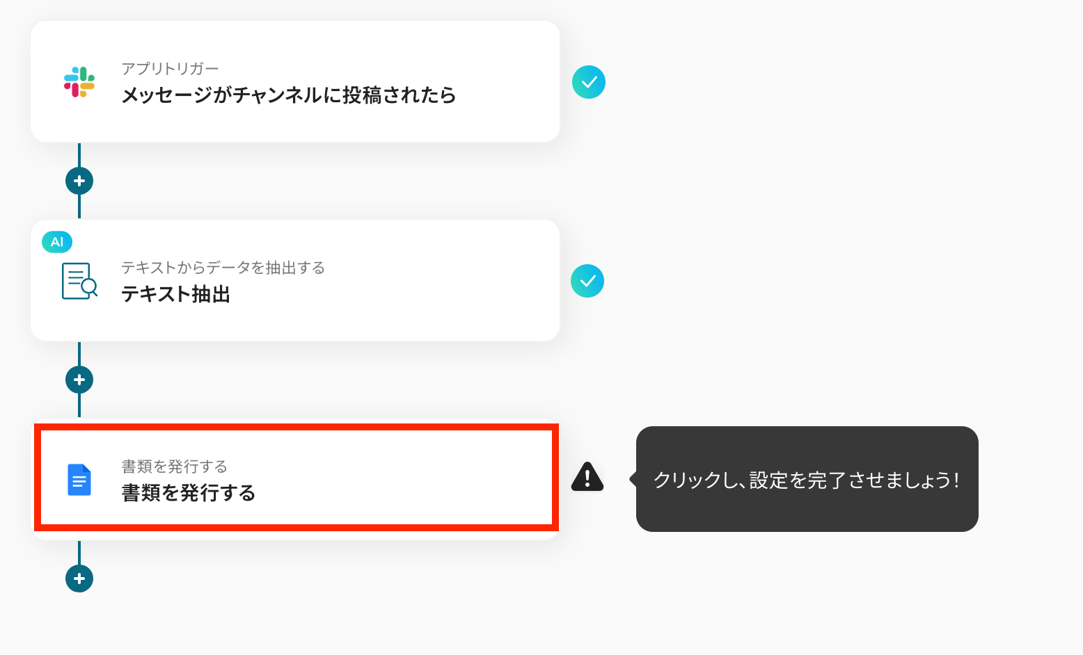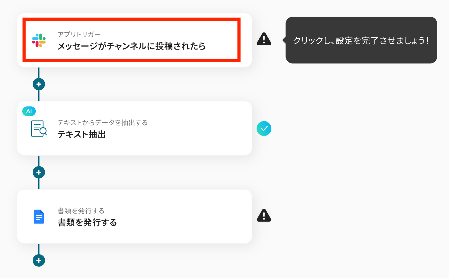 これから「SlackのメッセージからPDF書類を自動で作成し連携する」フローを設定していきます!