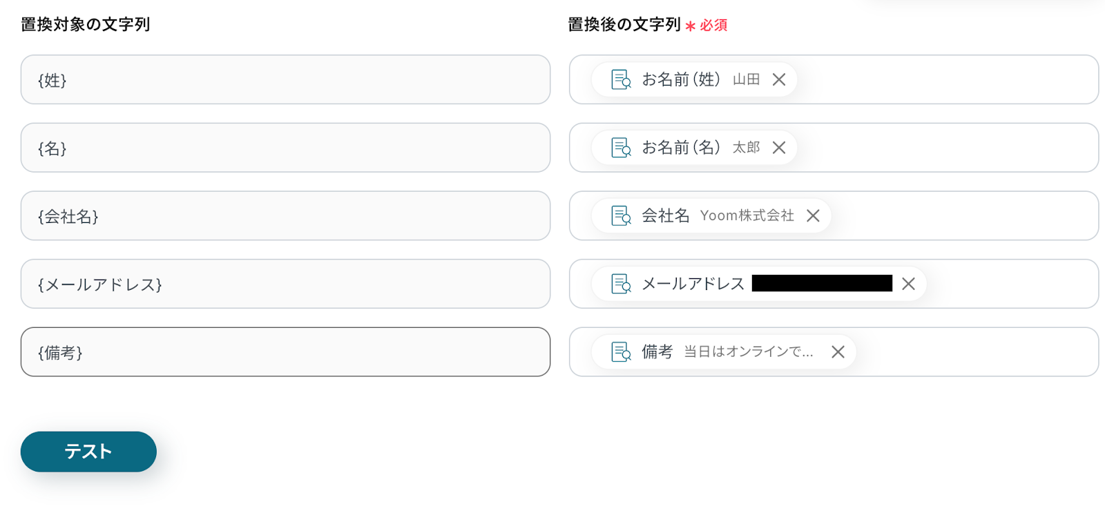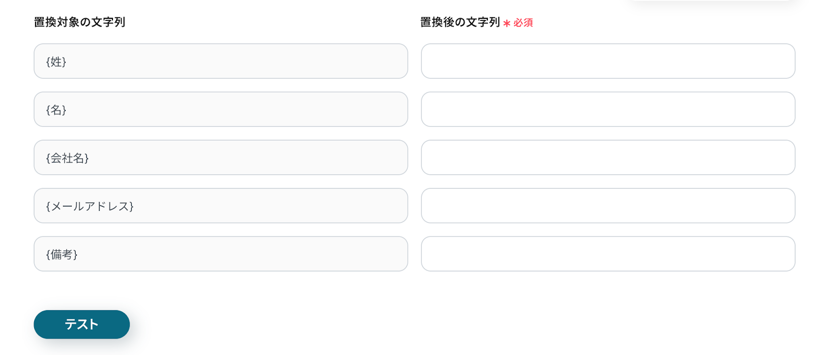 「置換対象の文字列」に対応する項目を「置換後の文字列」に設定していきましょう。