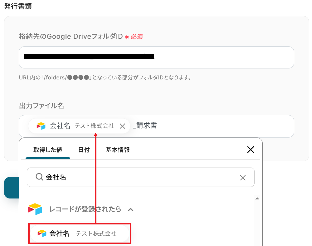 同様に格納先のGoogle DriveフォルダIDを選択しましょう。