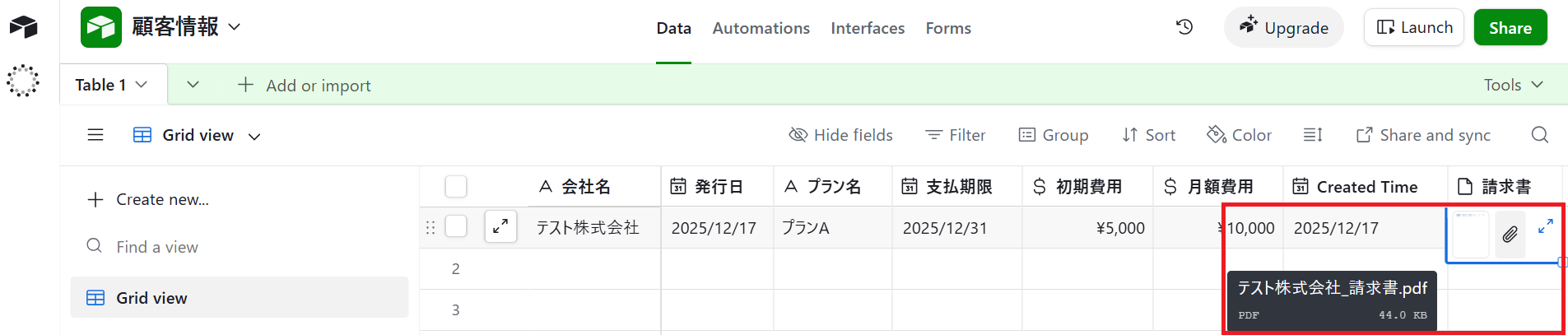 さらにAirtableで企業情報と合わせて請求書の情報を登録することで、情報を可視化でき管理がスムーズにできます。
