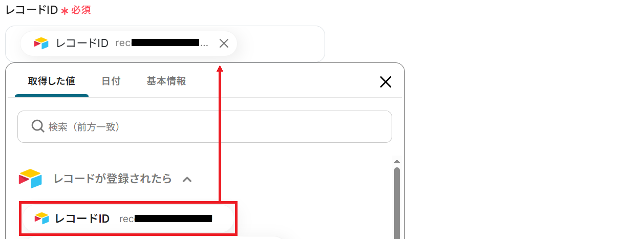 ※以下のように取得した値を設定することで、トリガーが実行されるたびに最新のレコード情報を反映できます。