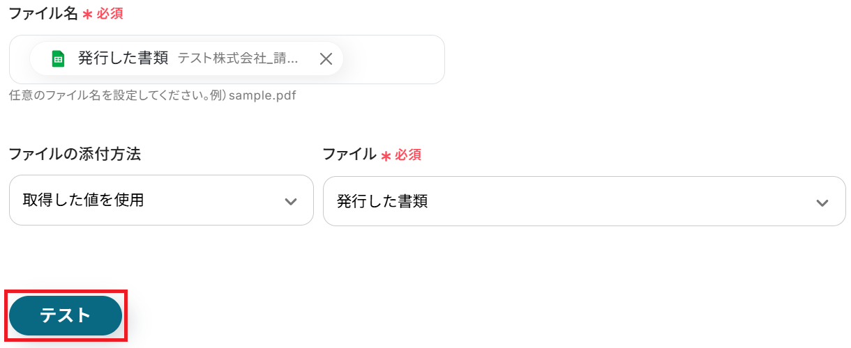 先ほど発行した書類を、はじめに用意したテーブルのレコードに添付します。