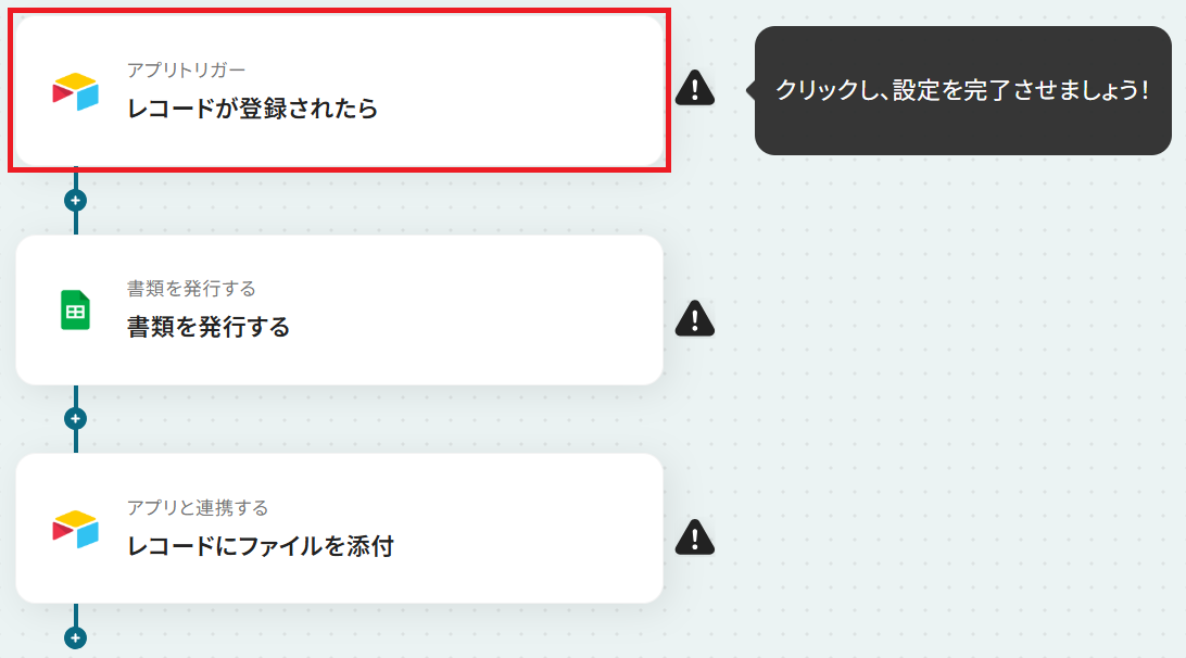 Airtableのテーブル情報をもとに、書類を自動で発行する設定をします。
