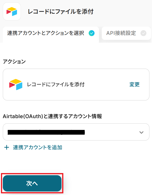 ステップ5:Airtableのアクション設定