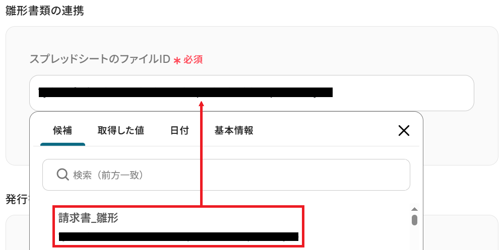 先ほど用意したスプレッドシートのファイルIDを候補から選択してください。