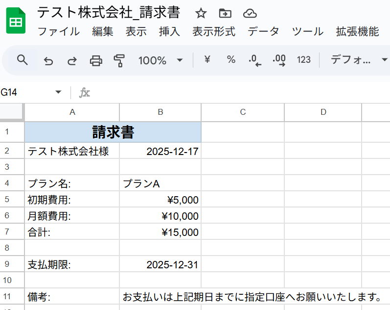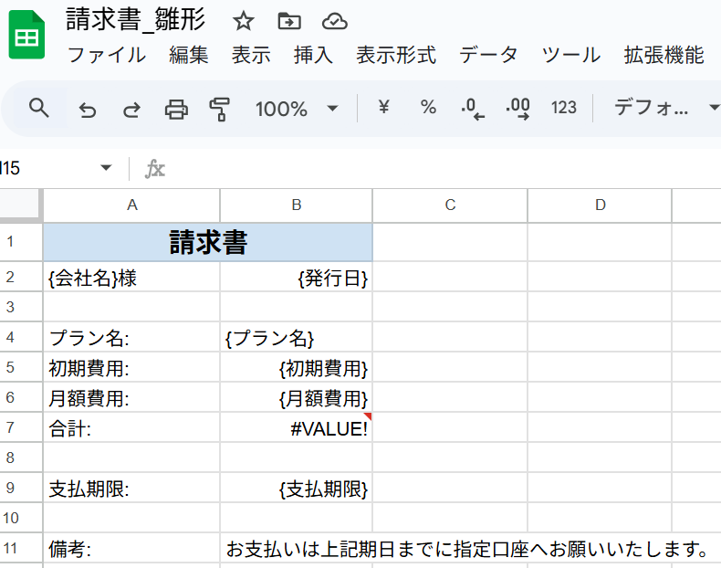 今回は以下のような、請求書を模した雛形を用意しました。
