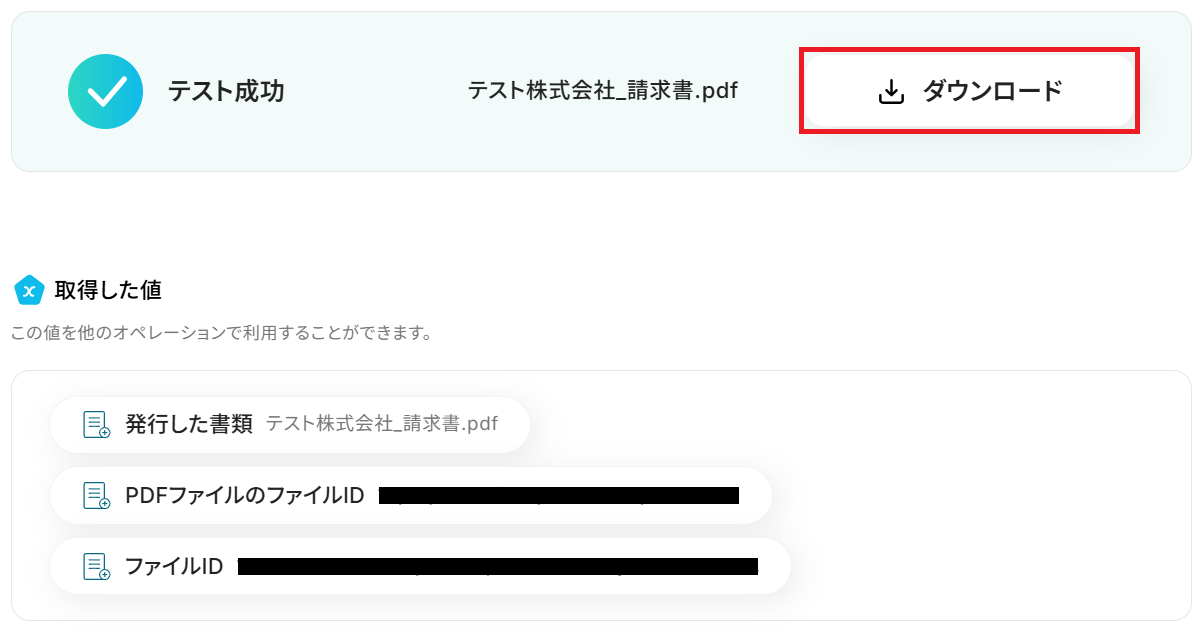 - 続けて、kintoneの「ファイルをダウンロード」アクションを設定します