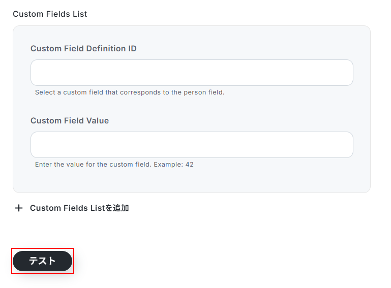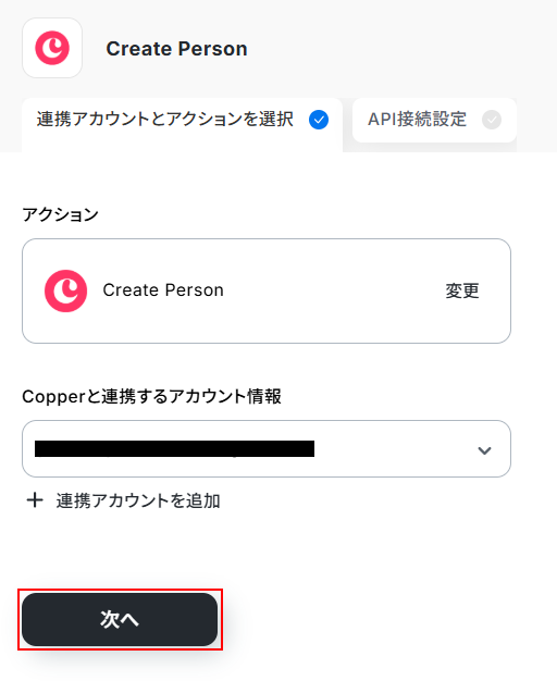 Jotformのトリガー設定では、どのフォームが送信された時にワークフローを起動させるか、対象のフォームを任意で設定できます。 CopperにPersonを作成する際、Jotformのどの回答項目(氏名、会社名、メールアドレスなど)を、Copperのどのフィールドに連携するかを自由に設定できます。 ■注意事項