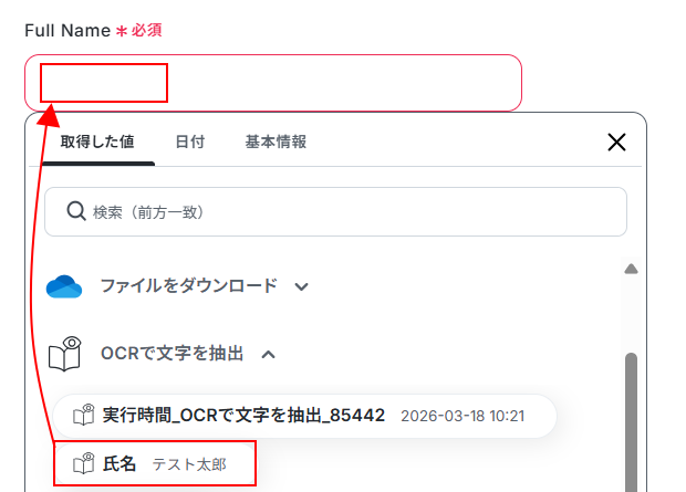 Full Nameを設定します。 入力欄をクリックし、取得した値を設定しましょう。