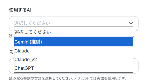 次に、使用するAIを選択します。 プルダウンメニューから使用したいものを選択してください。