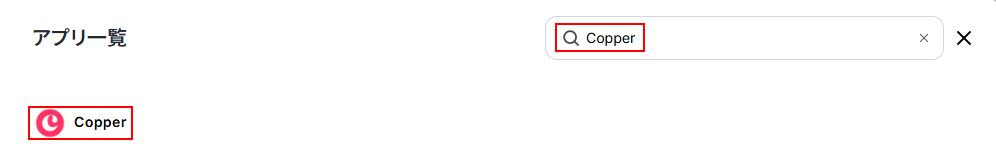 Copperをマイアプリ連携 マイアプリ画面にある+新規接続 ボタンをクリックすると、入力欄が表示されます。Copper と入力し、表示されたアプリをクリックしましょう。