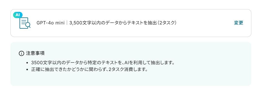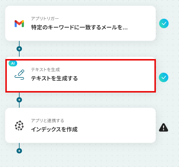 ここでは前項で取得した値からAIでテキストを生成する設定を行います。