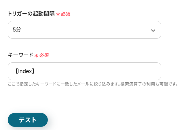 - アクション:Gmailで特定のキーワードに一致するメールを受信したら起動します。