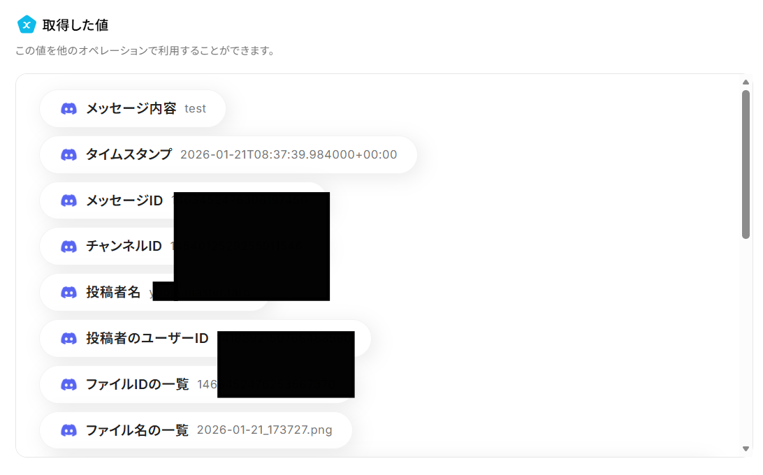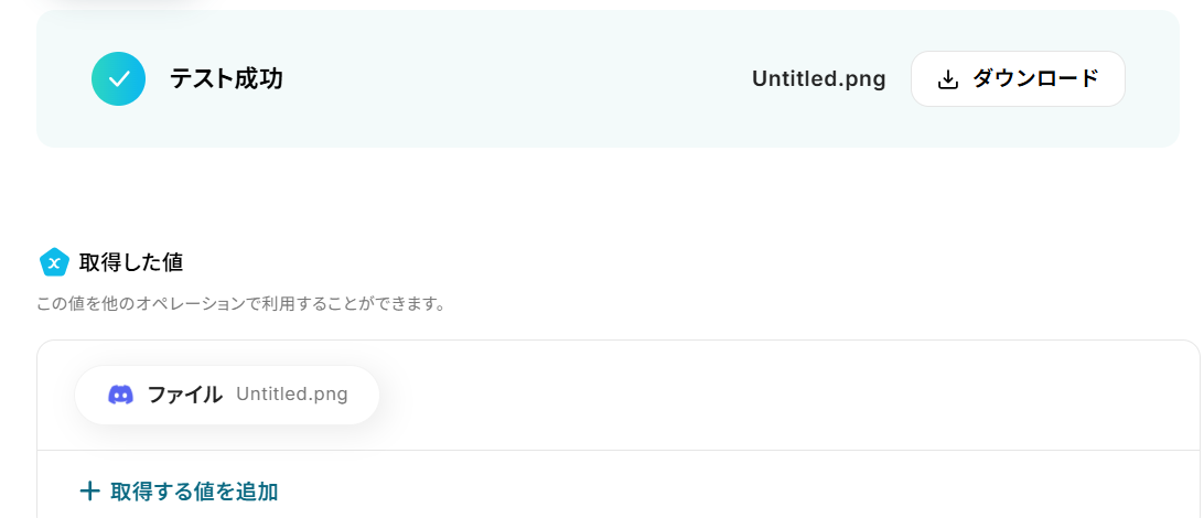 - 続いて、オペレーションでDiscordの「メッセージ内のファイルをダウンロードする」アクションを設定します