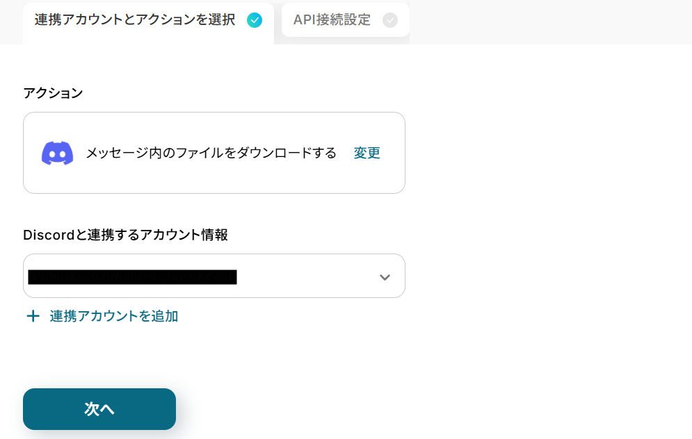 連携するアカウントを確認したら、アクションは変更せず「次へ」をクリックします。