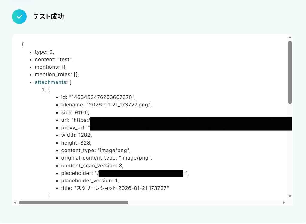 その後Yoomの設定画面に戻り、テストをクリックしましょう。