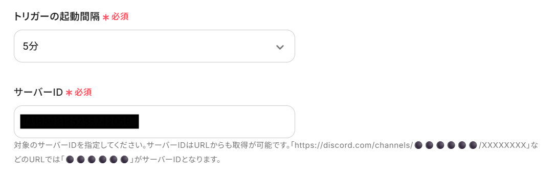- Discordのトリガー設定では、ピン作成の対象としたいサーバーIDおよびチャンネルIDを任意で設定してください