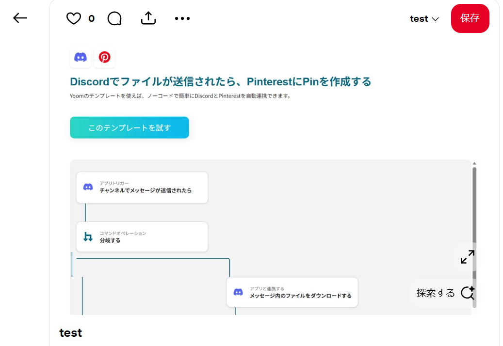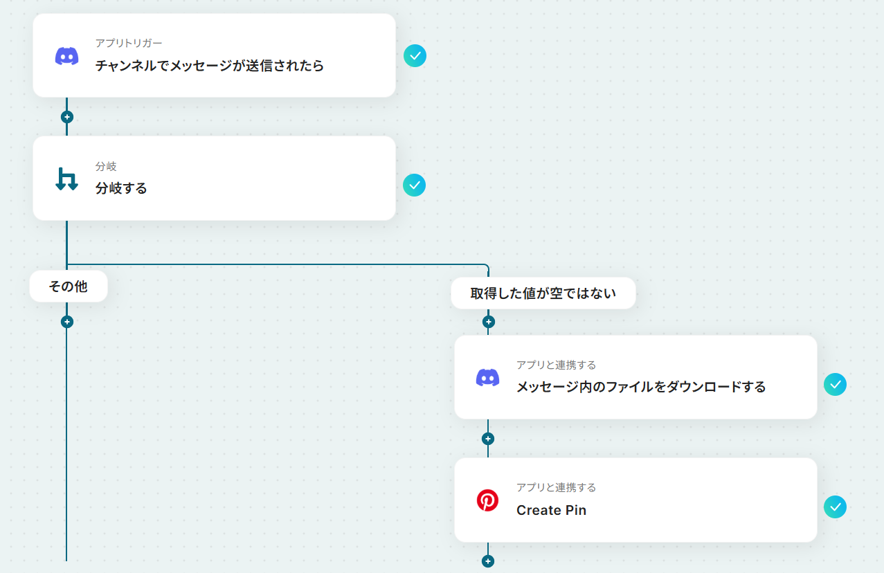 それではここから代表的な例として、Discordにファイルが送信されたら、そのファイルを基にPinterestにPinを自動で作成するフローを解説していきます!