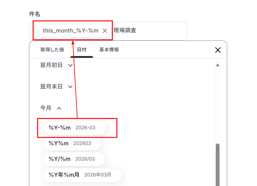 - Pipedriveで作成するアクティビティの件名や期限などの各項目には、固定のテキストを設定したり、前段のオペレーションで取得した情報を変数として埋め込んだりするカスタムが可能です