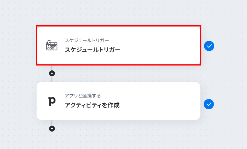 - スケジュールトリガー設定とPipedriveのアクション設定