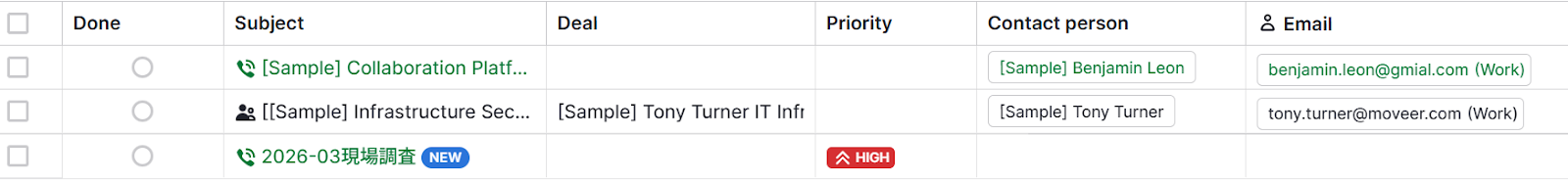 実際にフローボットを起動して、指定したスケジュールになったらPipedriveにアクティビティが追加されているかを確認してみてくださいね!