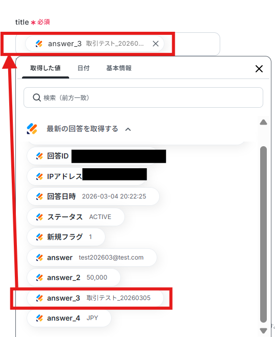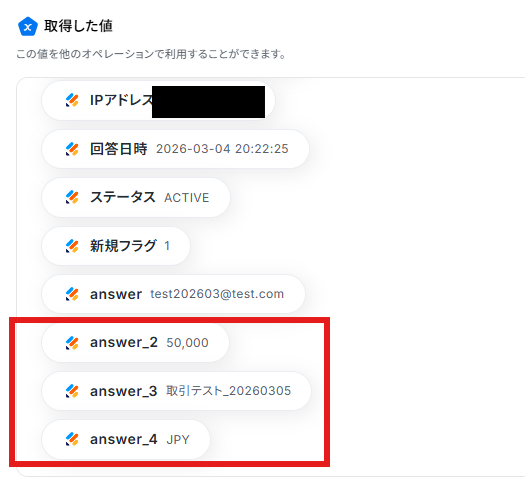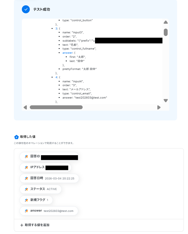 ステップ4:Jotformの該当フォームから最新の回答を取得する