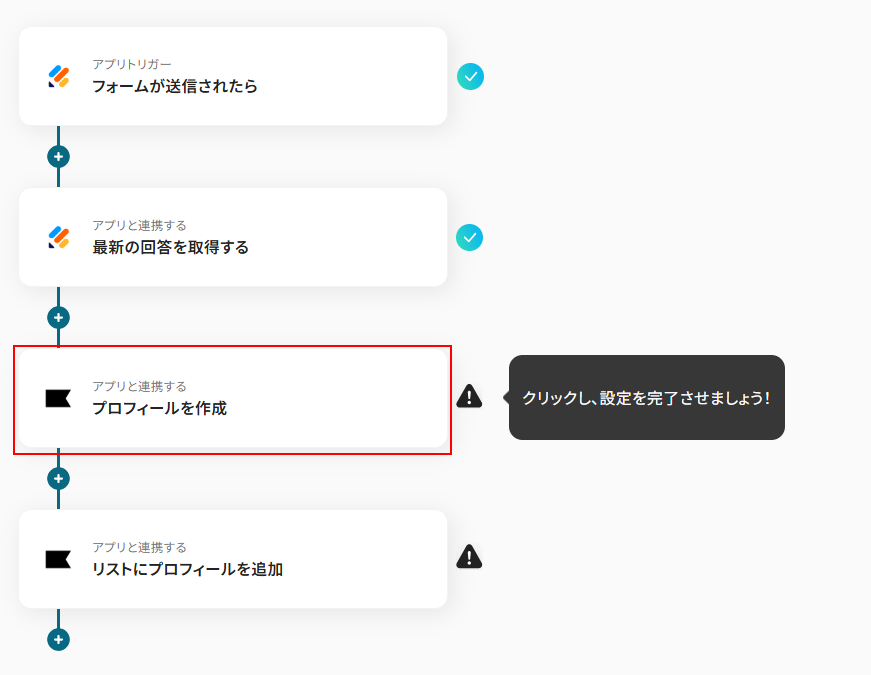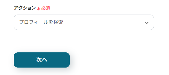 次に、「リストにプロフィールを追加」アクションを「プロフィールを更新」に変更し設定することで、プロフィールの更新を自動化できます。
