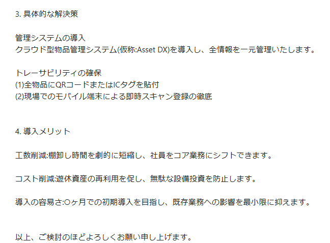 今回は提案書のドラフトを作成するので「全文」のままにしました!