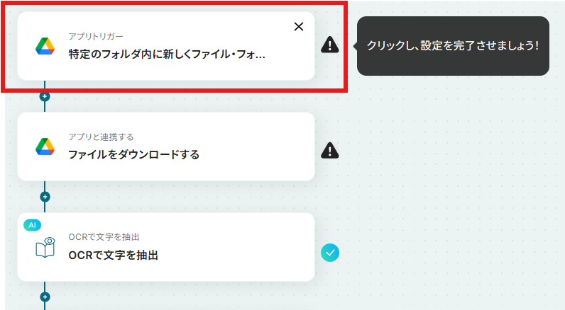 ステップ3:Google Driveで特定のフォルダ内に新しくファイル・フォルダが作成されたら