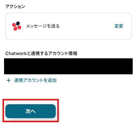 Chatworkの「メッセージを送る」オペレーション直下にある「+」マークをクリックします。