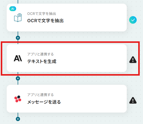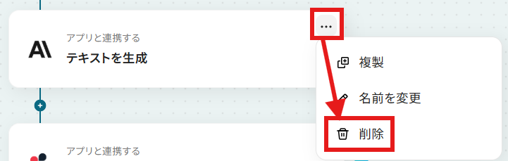 A:はい、可能です!Anthropic(Claude)の「テキストを生成」オペレーションを削除します。「OCRで文字を抽出」オペレーション直下の「+」マークからChatGPTを検索し、「テキストを生成」を選択しましょう。