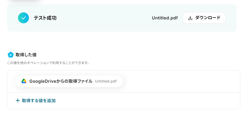 設定できたら「テスト」を行いましょう。テストに成功すると、対象のファイルがダウンロードされます。