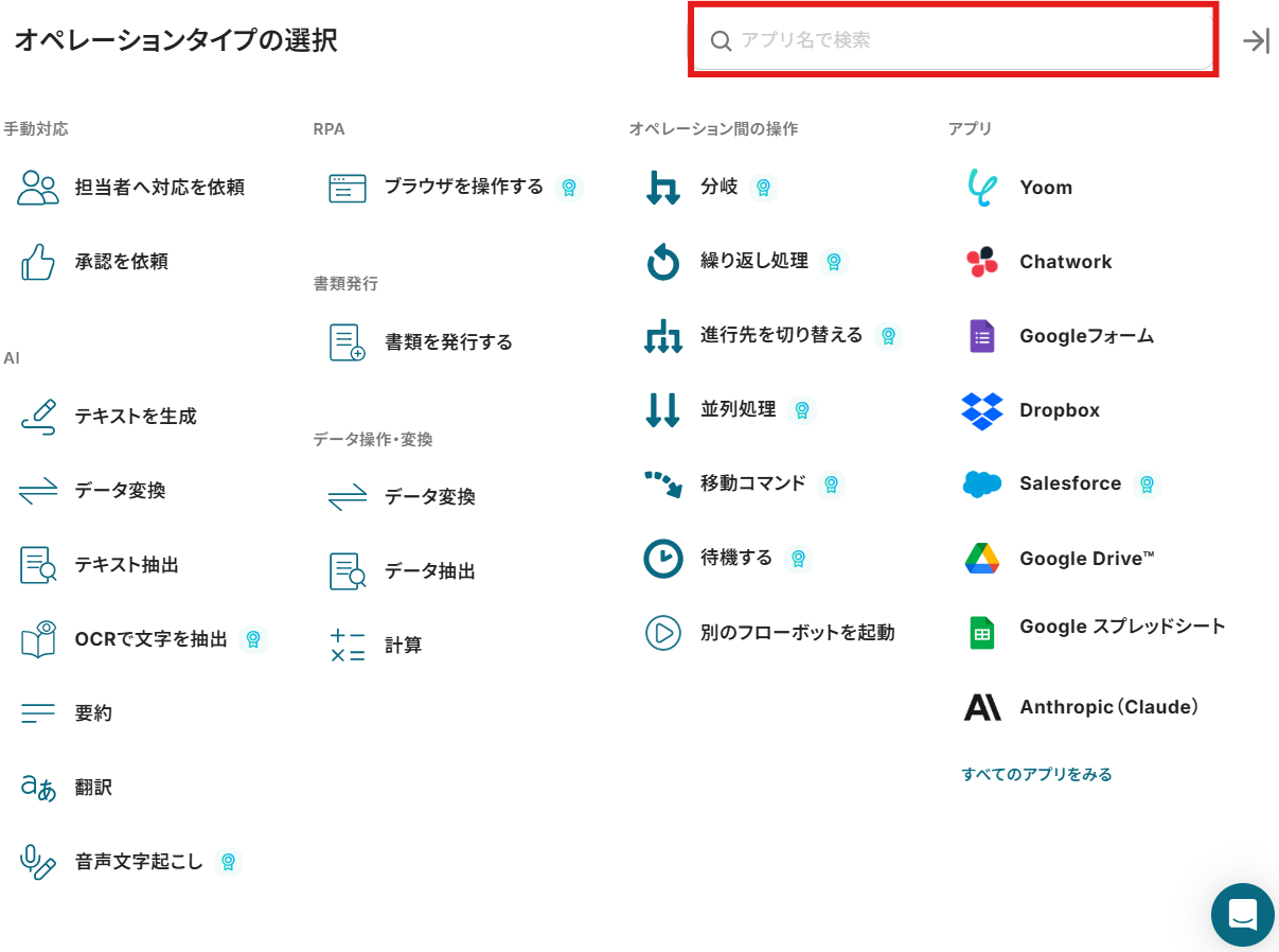 - OCRや音声を文字起こしするAIオペレーションは、チームプラン・サクセスプラン限定の機能です。フリープランやミニプランでセットするとエラーになってしまうので、ご注意ください。