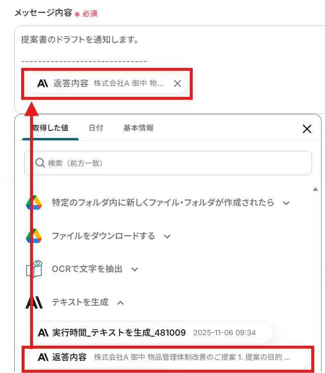 取得した値は変数となります。固定値ではないため、トリガーが実行されるたびに取得した情報を反映できます。