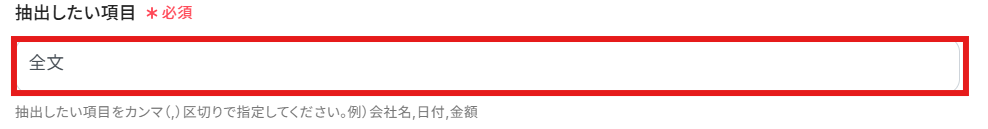 「抽出したい項目」にはデフォルトで「全文」が設定されています。