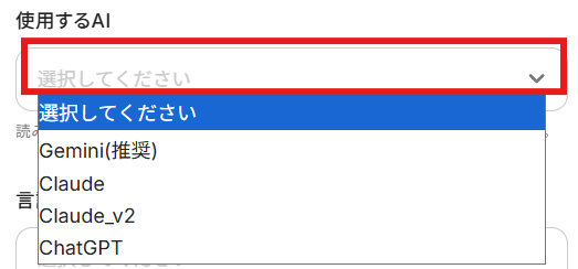 「使用するAI」を「Gemini(推奨)」「ChatGPT」「Claude」「Claude_v2」から選択してください。