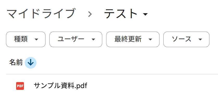 「フォルダID」に設定したフォルダに、テスト用にファイルを作成しましょう。