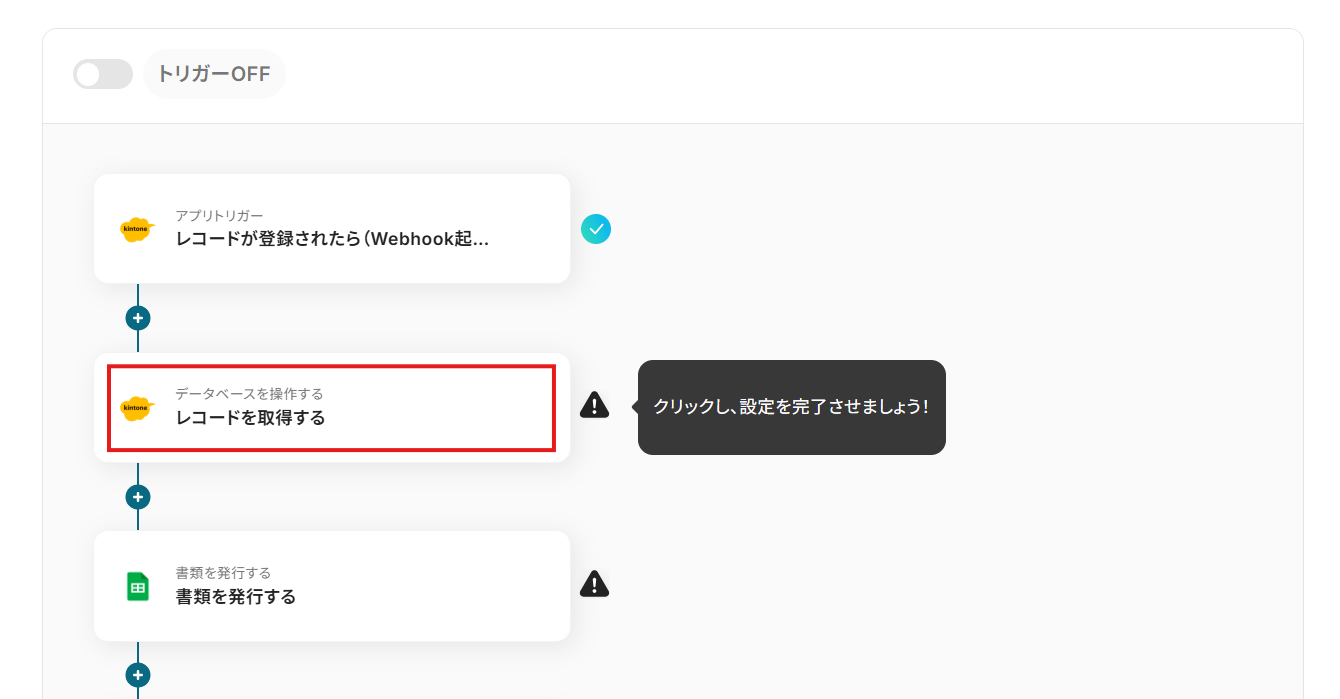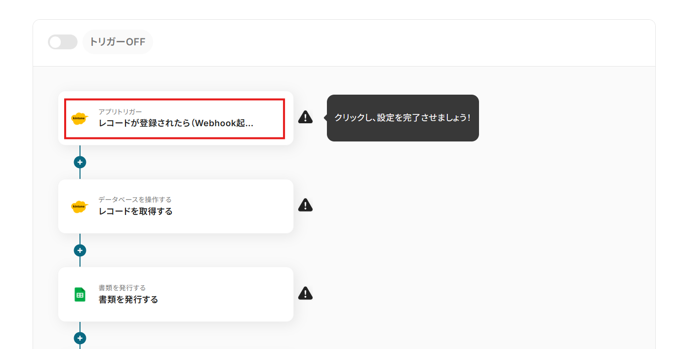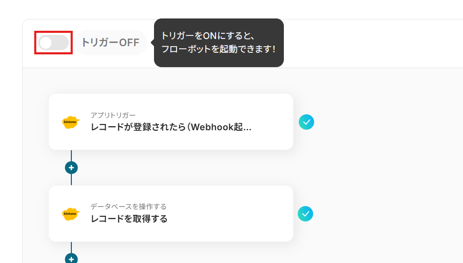 フローの画面に戻り、「レコードが登録されたら(Webhook起動)」にチェックマークがついていれば完了です。