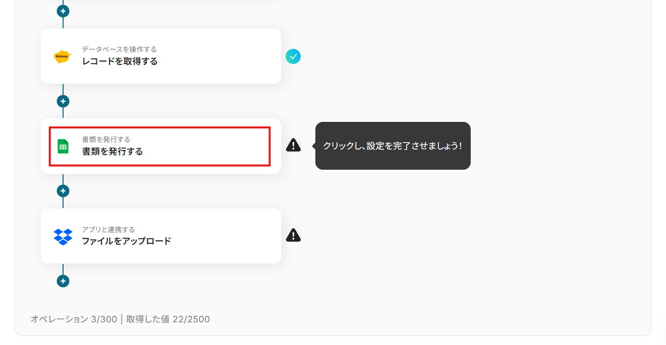 フローの画面に戻り、「書類を発行する」にチェックマークがついていれば完了です。