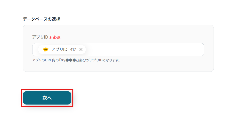 - データベースの連携の「アプリID」に、ステップ3で取得したアプリIDを設定。